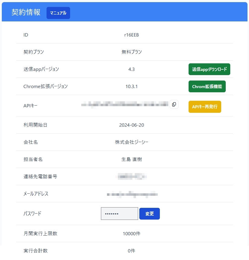 【APIキー】 利用ユーザー様の専用APIキーとなります。取り扱いに注意ください